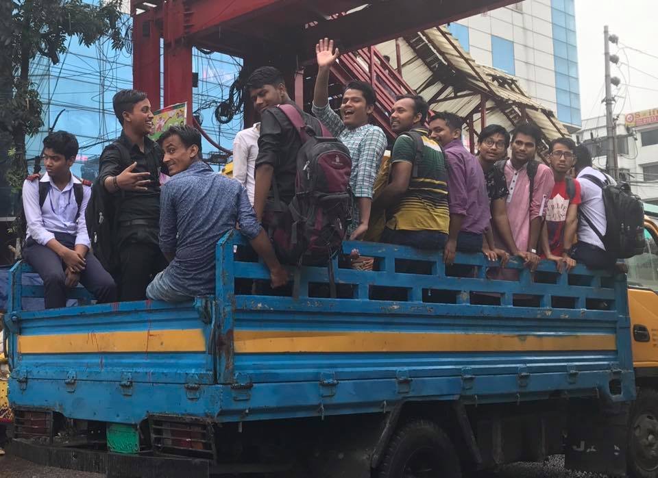 বৃষ্টি নিয়ে আর লিখব না প্রতিজ্ঞা করেছিলাম। কিন্তু এমন চমৎকার দৃশ্য দেখে না লিখে কিভাবে পারি। এক দঙ্গল ছেলে খোলা ট্রাকে উঠে পড়েছে। কলেজের ইউনিফর্ম গায়ে, কলেজ ফেরত সবাই বাড়ী যাচ্ছে বুঝতে অসুবিধা হয় না। প্রত্যেকের হাতে ছাতা, তবে সবই গোটানো, খুলে মাথায় দেওয়ার কথা কারো মনে আসে নি। কোথায় যাচ্ছে এ ট্রাক? পথচারীর এ প্রশ্নে উত্তর দিল এক স্বঘোষিত কন্ডাক্টর, কোথায় যায় জানি না, খালি উঠে পড়েন ! কিছুক্ষণের মধ্যে ভরে উঠলো ট্রাক। একজন আরেকজনকে হাত ধরে টেনে তুলছে।