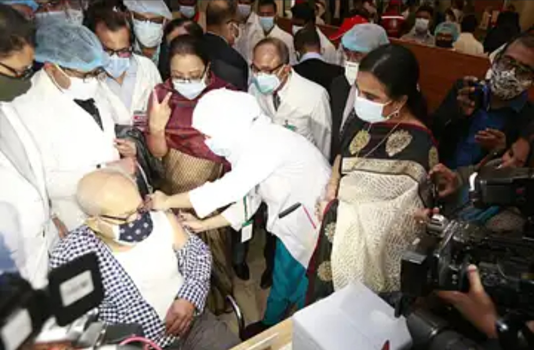 করোনার টিকা নিলেন ভিসি কনক কান্তি বড়ুয়া : বিএসএমএমইউ-সহ ৫ হাসপাতালে টিকা দেওয়া শুরু