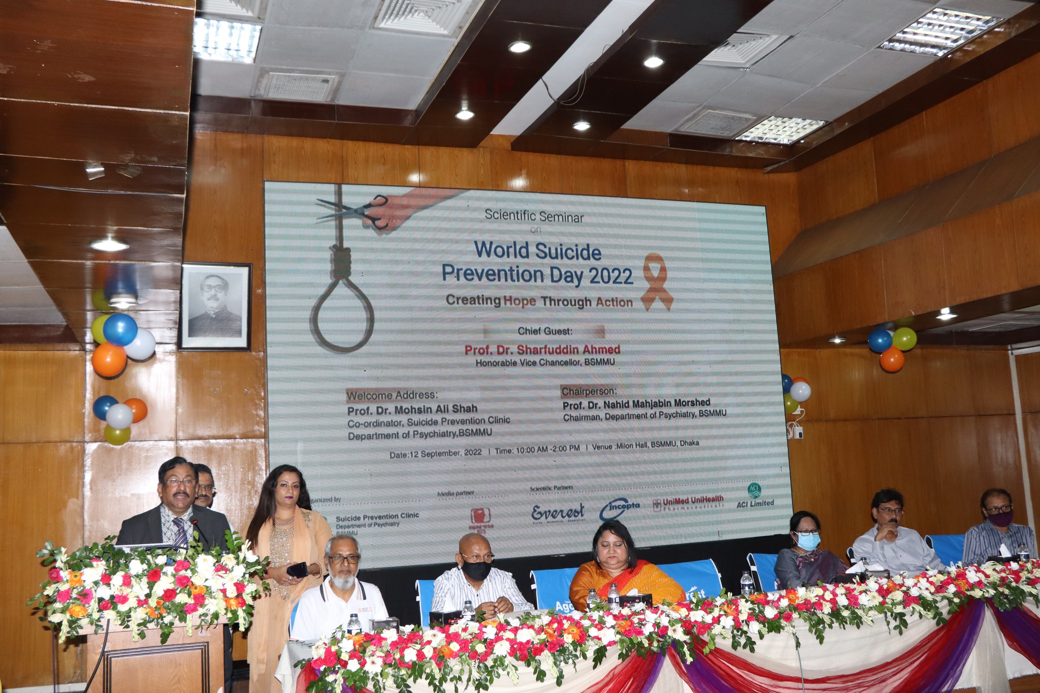 ‘কর্মের মাধ্যমে আশা তৈরি করো’ স্লোগানকে সামনে রেখে বঙ্গবন্ধু শেখ মুজিব মেডিক্যাল বিশ্ববিদ্যালয়ে (বিএসএমএমইউ) বিশ্ব আত্মহত্যা প্রতিরোধ দিবস-২০২২ উপলক্ষে আয়োজিত সেমিনারে প্রধান অতিথির বক্তব্যে
