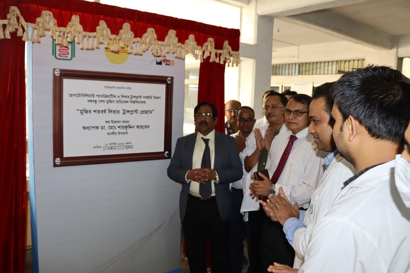 বঙ্গবন্ধু শেখ মুজিব মেডিক্যাল বিশ্ববিদ্যালয়ে (বিএসএমএমইউ) ‘মুজিব শতবর্ষ লিভার প্রতিস্থাপন প্রোগ্রাম’এর শুভ উদ্বোধন করা হয়েছে। সোমবার সকাল ১০ টায় (১৭ অক্টোবর ২০২২ খ্রিষ্টাব্দ) বিশ্ববিদ্যালয়ের সি-ব্লকে হেপাটোবিলিয়ারি, প্যানক্রিয়েটিক ও লিভার ট্রান্সপ্লান্ট সার্জারি বিভাগে প্রধান অতিথি হিসেবে বঙ্গবন্ধু শেখ মুজিব মেডিক্যাল বিশ্ববিদ্যালয়ের উপাচার্য অধ্যাপক ডা. মোঃ শারফুদ্দিন আহমেদ এ কার্যক্রমের শুভ উদ্বোধন করেন।