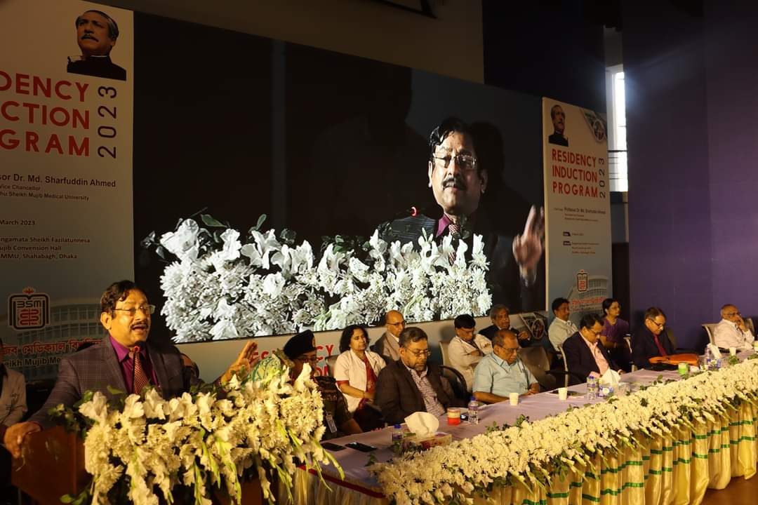 রবিবার ৫ মার্চ ২০২২ইং তারিখে বঙ্গবন্ধু শেখ মুজিব মেডিক্যাল বিশ্ববিদ্যালয়ের (বিএসএমএমইউ)’র বঙ্গমাতা শেখ ফজিলাতুন্নেসা মুজিব কনভেনশন হলে সমগ্র দেশের মেডিক্যাল শিক্ষায় উচ্চতর ডিগ্রি অর্জণের অভিপ্রায়ে মার্চ ২০২৩ সেশনে ভর্তিকৃত রেসিডেন্সি প্রোগ্রামের (Residency Programe ) শিক্ষার্থীদের ইনডাকশন (Induction) (আবেশন অনুষ্ঠান) প্রোগ্রাম অনুষ্ঠিত হয়েছে। গুরুত্বপূর্ণ এ অনুষ্ঠানে সারা দেশের বিভিন্ন মেডিক্যাল শিক্ষা প্রতিষ্ঠানের বিভিন্ন অনুষদের বিদেশী ছাত্রছাত্রীসহ মেডিক্যাল শিক্ষার্থীগণ, ডীনবৃন্দ, কোর্স ডাইরেক্টরগণ, (বিএসএমএমইউ)’র অধিভুক্ত কলেজের প্রধানগণ, এই বিশ্ববিদ্যালয়ের বিভিন্ন বিভাগের চেয়ারম্যান ও শিক্ষকবৃন্দ ইনডাকশন প্রোগ্রামে অংশ নেন। শিক্ষার্থীদের মধ্যে বিদেশী শিক্ষার্থীসহ সার্জারি অনুষদ, বেসিক সায়েন্স ও প্যারা ক্লিনিক্যাল সায়েন্স অনুষদ, মেডিসিন অনুষদ, ডেন্টাল অনুষদ এবং শিশু অনুষদের ১২৮৫ জন শিক্ষার্থী আবেশিত হন। শিক্ষার্থীবৃন্দ সকলেই এমবিবিএস ডিগ্রী অর্জনকারী চিকিৎসকবৃন্দ।