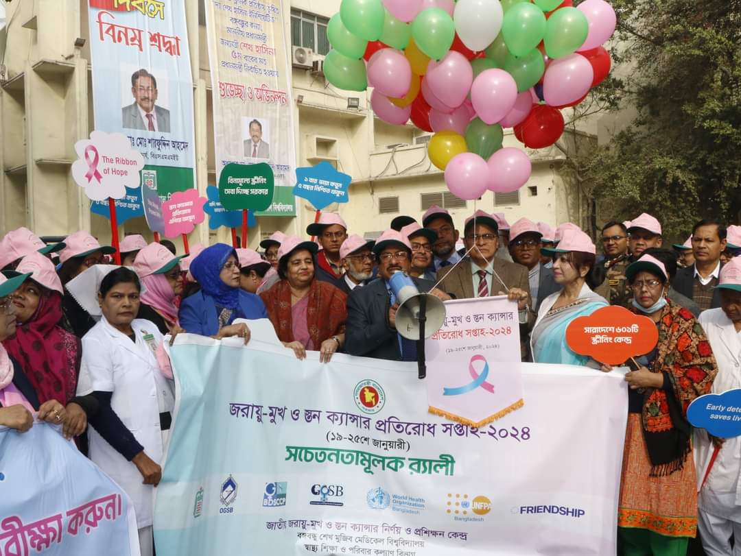 আজ শনিবার ২০ জানুয়ারি ২০২৪ইং তারিখে জাতীয় জরায়ু মুখ ও স্তন ক্যান্সার নির্ণয় ও প্রশিক্ষণ কেন্দ্রের উদ্যোগে জরায়ু মুখ ও স্তন ক্যান্সার প্রতিরোধ সপ্তাহ ২০২৪ উপলক্ষে আয়োজিত র্যালি ও সেবা বুথের প্রধান অতিথি হিসেবে শুভ উদ্বোধন করেন বঙ্গবন্ধু শেখ মুজিব মেডিক্যাল বিশ্ববিদ্যালয়ের উপাচার্য অধ্যাপক ডা. মোঃ শারফুদ্দিন আহমেদ। এসময় সম্মানিত উপ-উপাচার্য (শিক্ষা) অধ্যাপক ডা. একেএম মোশাররফ হোসেন, উপ-উপাচার্য (প্রশাসন) অধ্যাপক ডা. ছয়েফ উদ্দিন আহমদ, উপ-উপাচার্য (গবেষণা ও উন্নয়ন) অধ্যাপক ডা. মোঃ মনিরুজ্জামান খান, ডিন অধ্যাপক ডা. মোহাম্মদ আলী আসগর মোড়ল, জাতীয় জরায়ু মুখ ও স্তন ক্যান্সার নির্ণয় ও প্রশিক্ষণ কেন্দ্রের পরিচালক অধ্যাপক ডা. আশরাফুন্নেসা, পরিচালক (হাসপাতাল) ব্রি. জে. ডা. মোঃ রেজাউর রহমান প্রমুখ উপস্থিত ছিলেন।