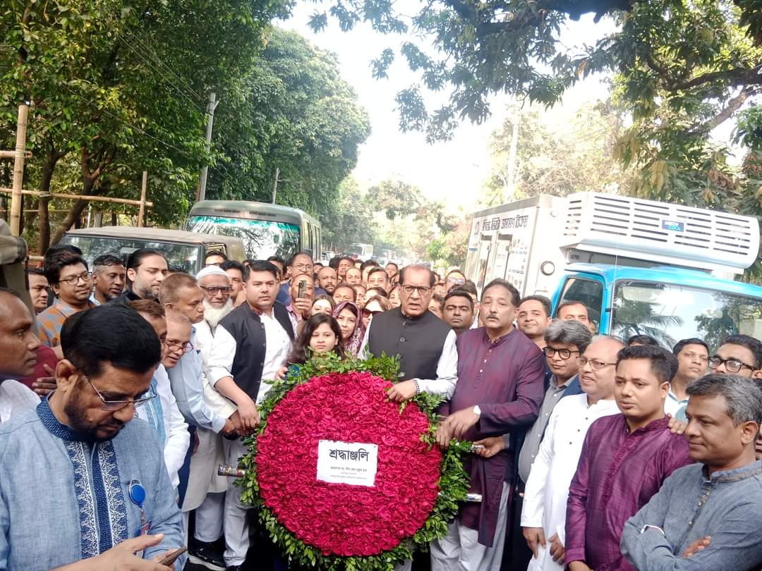 বঙ্গবন্ধু শেখ মুজিব মেডিক্যাল বিশ্ববিদ্যালয়ের নবনিযুক্ত উপাচার্য প্রখ্যাত চক্ষুরোগ বিশেষজ্ঞ অধ্যাপক ডা. দীন মোঃ নূরুল হক আজ শুক্রবার ১৫ মার্চ ২০২৪ইং তারিখ সকাল ৮টা ৩০ মিনটে প্রথমে ধানমন্ডি ৩২ নম্বরে বঙ্গবন্ধুর প্রতিকৃতিতে এবং পরবর্তীতে বনানী কবরস্থানে বঙ্গবন্ধুর পরিবারের শহীদ সদস্যবর্গের প্রতি গভীর শ্রদ্ধাঞ্জলি নিবেদন করেন। এসময় বিশ্ববিদ্যালয়ের মেডিসিন অনুষদের ডিন অধ্যাপক ডা. আবু নাসার রিজভী, প্রক্টর অধ্যাপক ডা. মোঃ হাবিবুর রহমান দুলাল, হল প্রভোস্ট অধ্যাপক ডা. এস এম মোস্তফা জামান, অনকোলজি বিভাগের চেয়ারম্যান অধ্যাপক ডা. নাজির উদ্দিন মোল্লাহ, হেপাটোলজি বিভাগের অধ্যাপক ডা. মামুন আল মাহতাব স্বপ্নীল, ইউরোলজি বিভাগের অধ্যাপক ডা. তৌহিদ মোঃ সাইফুল ইসলাম দিপু, সাবেক রেজিস্ট্রার অধ্যাপক ডা. এবিএম আব্দুল হান্নান, সাবেক প্রক্টর অধ্যাপক ডা. সৈয়দ মোজাফফর আহমেদ, রেডিওলজি বিভাগের অধ্যাপক ডা. মোছা. সাঈদা শওকত, কার্ডিওলজি বিভাগের সহযোগী অধ্যাপক ডা. আরিফুল ইসলাম জোয়ারদার টিটো, সার্জারি বিভাগের সহযোগী অধ্যাপক ডা. বিদ্যুৎ চন্দ্র দেবনাথ, নেফ্রোলজি বিভাগের সহকারী অধ্যাপক ডা. জাকির হোসেন সুমন, শিশু নিউরোলজি বিভাগের সহকারী অধ্যাপক ডা. সানজিদা আহমেদ, অনকোলজি বিভাগের চিকিৎসক ডা. জাহান শামস নিটোল,জাতির জনক বঙ্গবন্ধু শেখ মুজবুর রহমান স্মৃতি জাদুঘরের কিউরেটর মোঃ নজরুল ইসলাম খান প্রমুখসহ বিশ্ববিদ্যালয় প্রশাসনের বিভিন্ন পর্যায়ের কর্মকর্তাবৃন্দ, শিক্ষক, চিকিৎসক, ছাত্রছাত্রী, কর্মকর্তা ও কর্মচারীবৃন্দ ও নবনিযুক্ত উপাচার্য মহোদয়ের পরিবারবর্গের সদস্যবৃন্দ উপস্থিত ছিলেন।