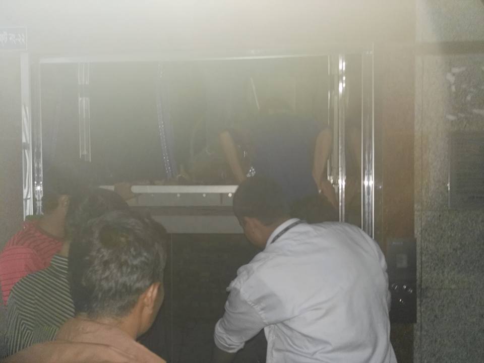 আটকে গিয়েছিল বিএসএমইউর লিফট : ফাঁক গলিয়ে বের করা আটকা পড়া লোকদের