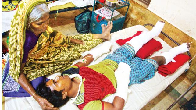 তুহিনের চার হাতে-পায়ে ব্যান্ডেজ। তাঁর মা পাশে বসে কাঁদছেন।