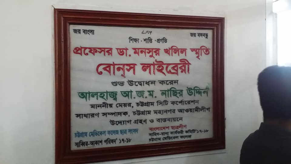 এর নাম রাখা হয়েছে উপমহাদেশের প্রখ্যাত মেডিকেল শিক্ষাবিদ প্রফেসর ডা. মনসুর খলিলের নামে। প্রফেসর ডা. মনসুর খলিল বোনস লাইব্রেরী।