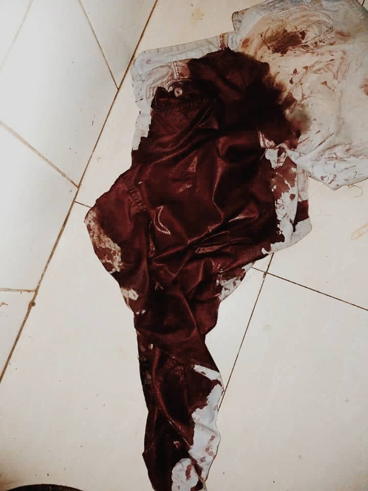 আহত ইনটার্ন চিকিৎসকের রক্তমাখা প্যান্ট ও পোষাক।----------------------------