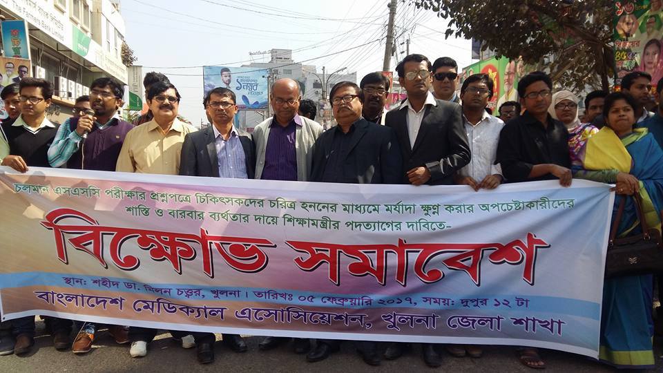 অভিমানী সংক্ষুব্ধ চিকিৎসকরা খুলনা বিএমএ-র মিলন চত্বরে, মাঘের মিষ্টি রৌদ্রে ১ ঘণ্টা চিৎকার করে প্রধানমন্ত্রীকে বুঝানোর চেষ্টা করলো , এ শিক্ষামন্ত্রী কেবল চিকিৎসকদের চরিত্রই হনন করেন নি , আপনার রাজনীতির চরিত্রও হনন করেছেন।