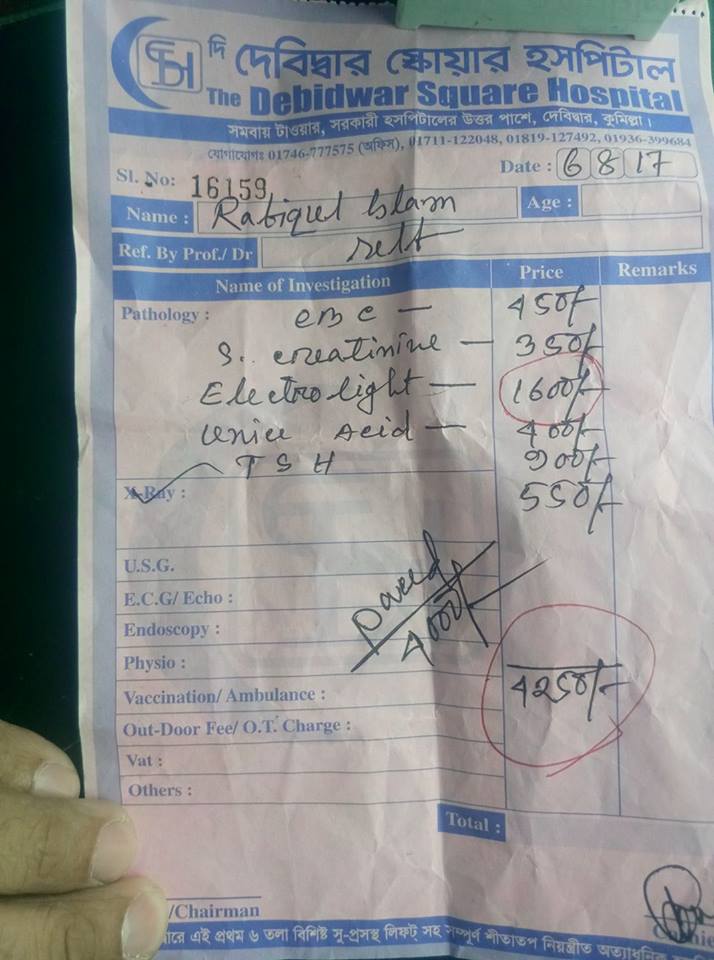রোগীর লোক না বুঝে সব টাকাই পরিশোধ করেছে৷