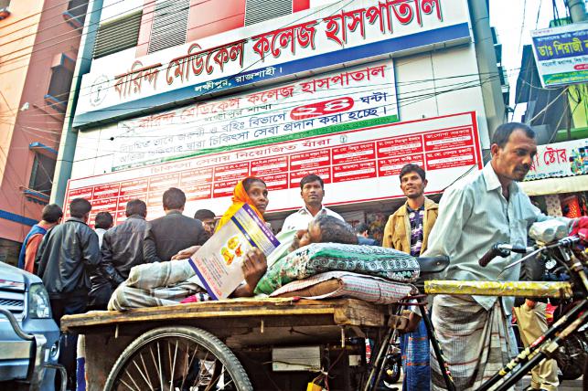ভ্রাম্যমাণ আদালতের অভিযানের পর রাজশাহীর বেসরকারি ক্লিনিকগুলো গতকাল দুপুর থেকে হঠাৎ করে ধর্মঘট ডাকায় বিপাকে পড়েন রোগীরা। গতকাল বিকেলে এমনই এক রোগীকে ভ্যানে করে সরিয়ে নেওয়া হচ্ছে। নগরের লক্ষ্মীপুর এলাকা থেকে তোলা ছবি l প্রথম আলোকোনো হাসপাতালে পাওয়া গেছে মেয়াদোত্তীর্ণ চিকিৎসা সরঞ্জাম। কোথাও আবার অস্ত্রোপচারকক্ষ নোংরা। আরেক হাসপাতালে পাওয়া গেছে ভারতের রাজস্থানের সরকারি হাসপাতালে সরবরাহ করা চিকিৎসা সরঞ্জাম, যার গায়ে লেখা ‘নট ফর সেল’। কয়েকটি হাসপাতালে পাওয়া গেছে চিকিৎসকদের স্বাক্ষরিত ফাঁকা (ব্ল্যাংক) রাইটিং প্যাড, যাতে ইচ্ছেমাফিক লিখে দেওয়া যায় রোগনির্ণয়ের বিভিন্ন পরীক্ষার ফল!
