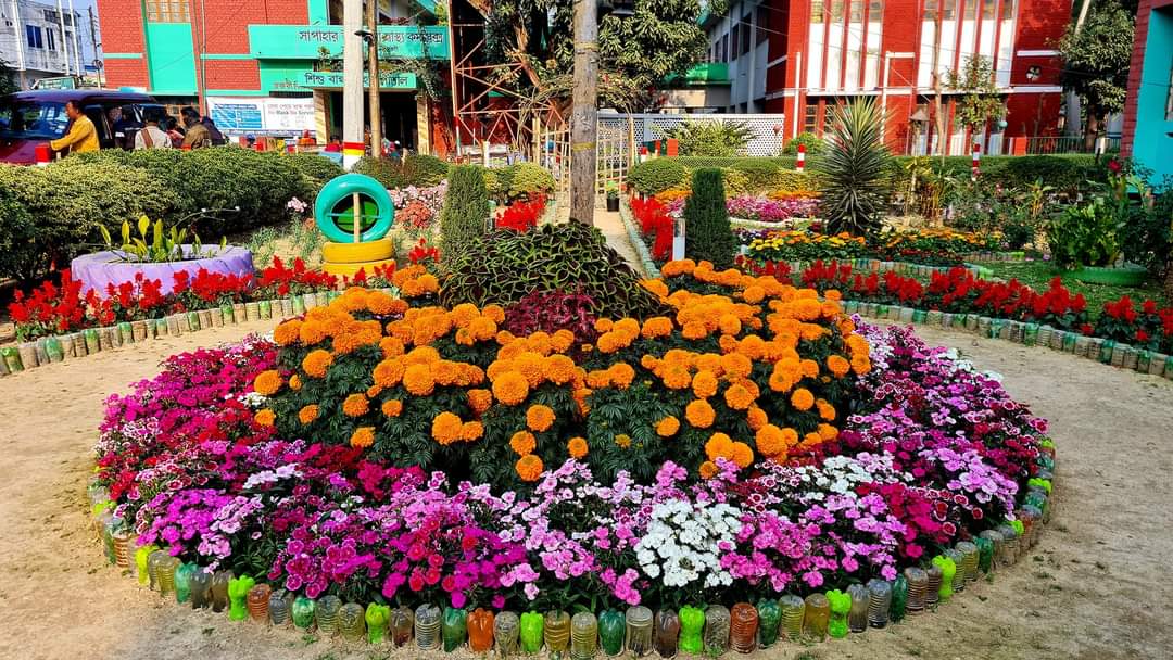 নওগাঁর সাপাহার উপজেলা হাসপাতাল এখন মনোরম ফুলবাগান