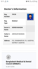 বিএমডিসির ওয়েবসাইটে এই ভুয়া পরিচয়ের ব্যবস্থা করেছিলেন নিরব নাহিয়ান ছবি: সংগৃহীত