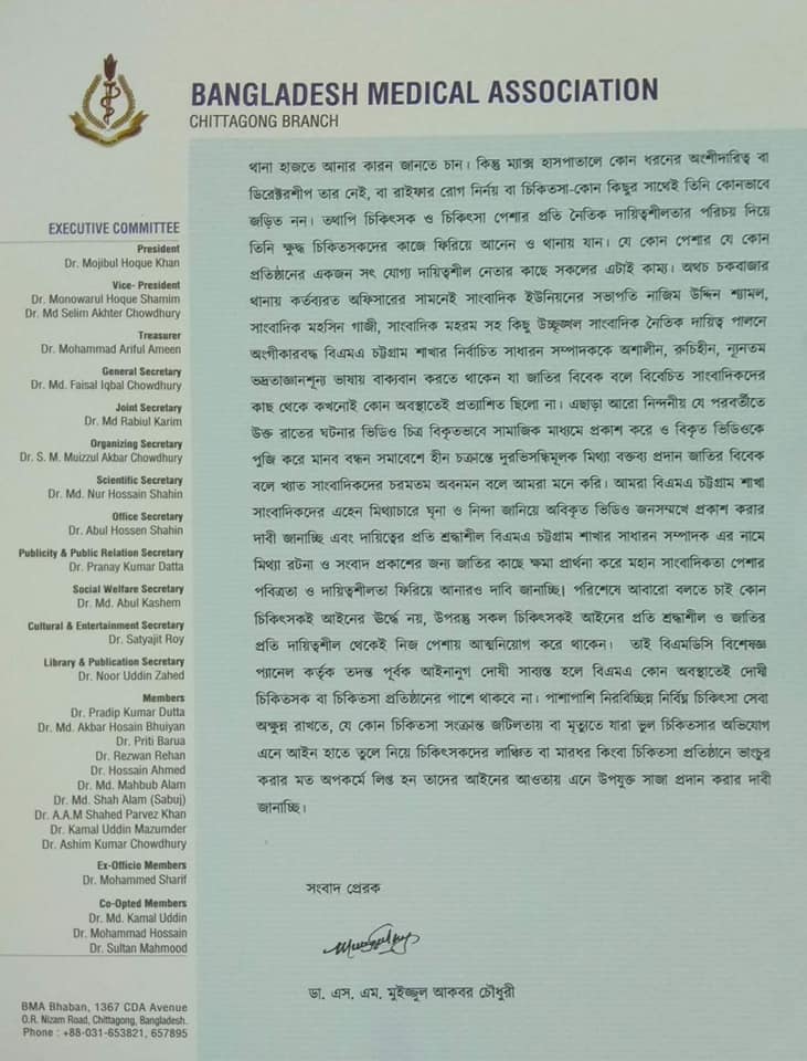 বিএমএ চট্টগ্রামের বক্তব্য