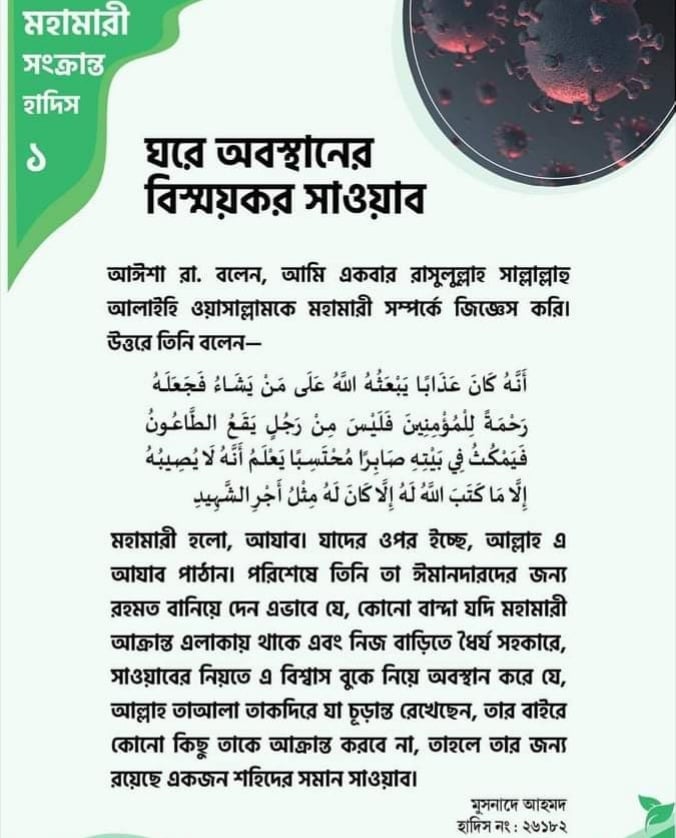 কোয়ারেন্টাইন ও সামাজিক দূরত্বের পরামর্শ দিয়েছিলেন মহম্মদ (দ)