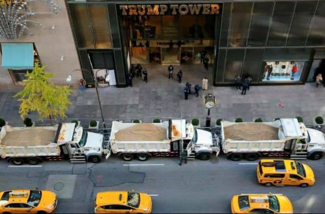বুধবার থেকেই ম্যানহাটনের ট্রাম্প টাওয়ারের সামনে নিউইয়র্ক পয়োঃনিষ্কাশন বিভাগের অনেকগুলো বালুবোঝাই ট্রাক মোতায়েন করা হয়। এর মাধ্যমে টাওয়ারের চারদিকে প্রতিরক্ষা বেষ্টনী গড়ে তোলা হয়েছে।