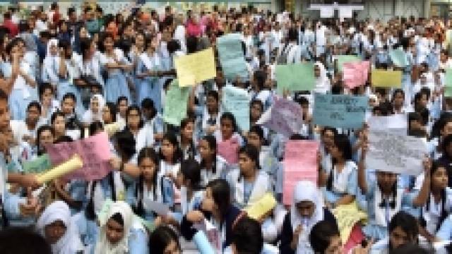 শুক্রবার দুপুরে বেইলি রোডে স্কুলের প্রধান ফটকের সামনে ‘ভিকারুননিসা স্কুল অ্যান্ড কলেজের বর্তমান ও প্রাক্তন ছাত্রীবৃন্দ’ ব্যানারে অবস্থান কর্মসূচি শুরু করে হাজার হাজার ছাত্রী।