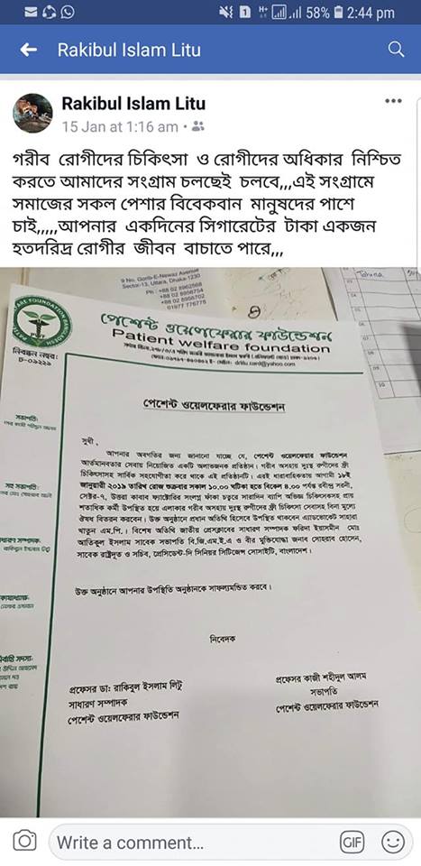 বিশেষ কলাম" লিটুর আজ বিনামূল্যে চিকিৎসা দেয়ার কথা ছিল :আমন্ত্রণ পত্র পোষ্ট করেছিল সে নিজেই"