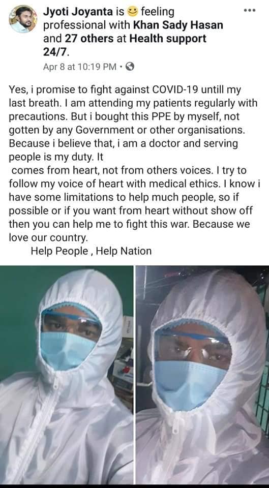 মানুষের জীবন রক্ষার মহান উজ্জীবনে করোনা চিকিৎসায় বিশেষ প্রশিক্ষণ নিয়েছিলেন ডা. জ্যোতি জয়ন্ত চক্রবর্ত্তী । তিনি করোনার বিরুদ্ধে চিকিৎসার ঝান্ডা তুলেছিলেন। বিশেষ প্রশিক্ষণ নেন তিনি। নিয়েছিলেন তারুণ্যের সেবার শপথ। এরই মাঝে শোকাবহ ঘটনা।