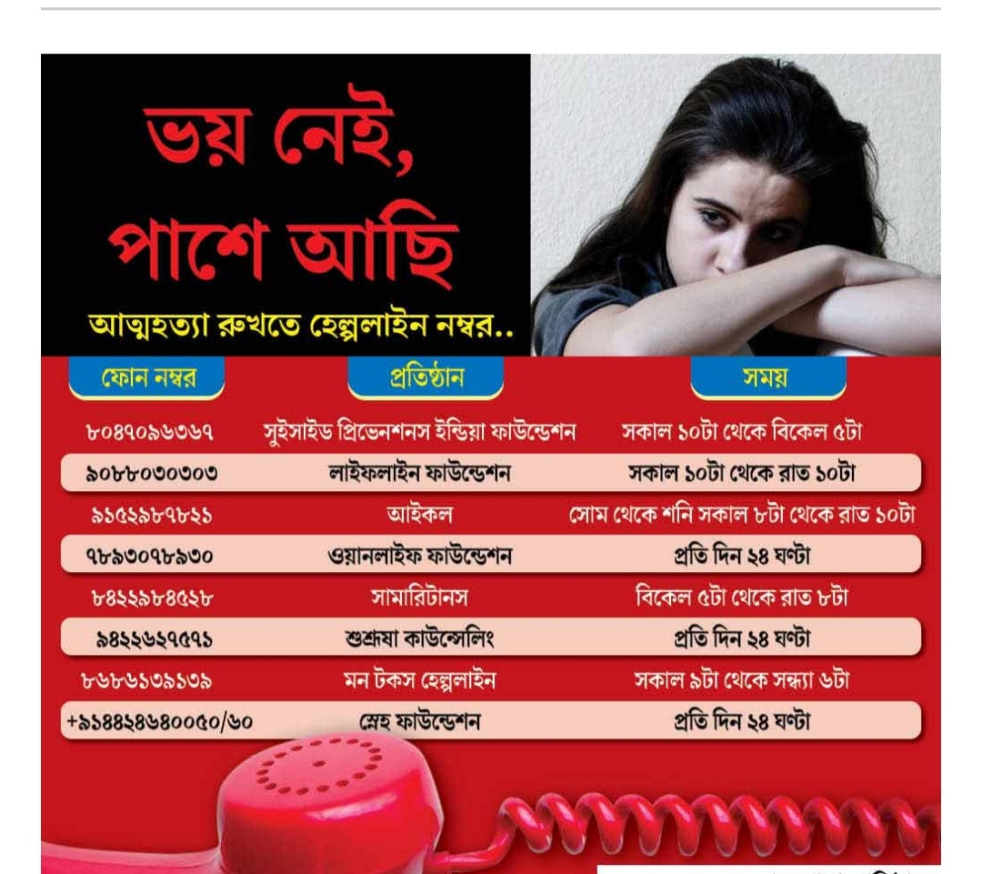 নেটদুনিয়ায় খুঁজলে এমন একাধিক হেল্পলাইন নম্বর পাওয়া যায়। তার কতগুলি কাজ করে? বিশ্ব আত্মহত্যা প্রতিরোধ দিবসের আগে সেই সব নম্বরে ফোন করে দেখা হল সংবাদ সংস্থা থেকে । কী শোনা গেল ফোনের উল্টো দিক থেকে?