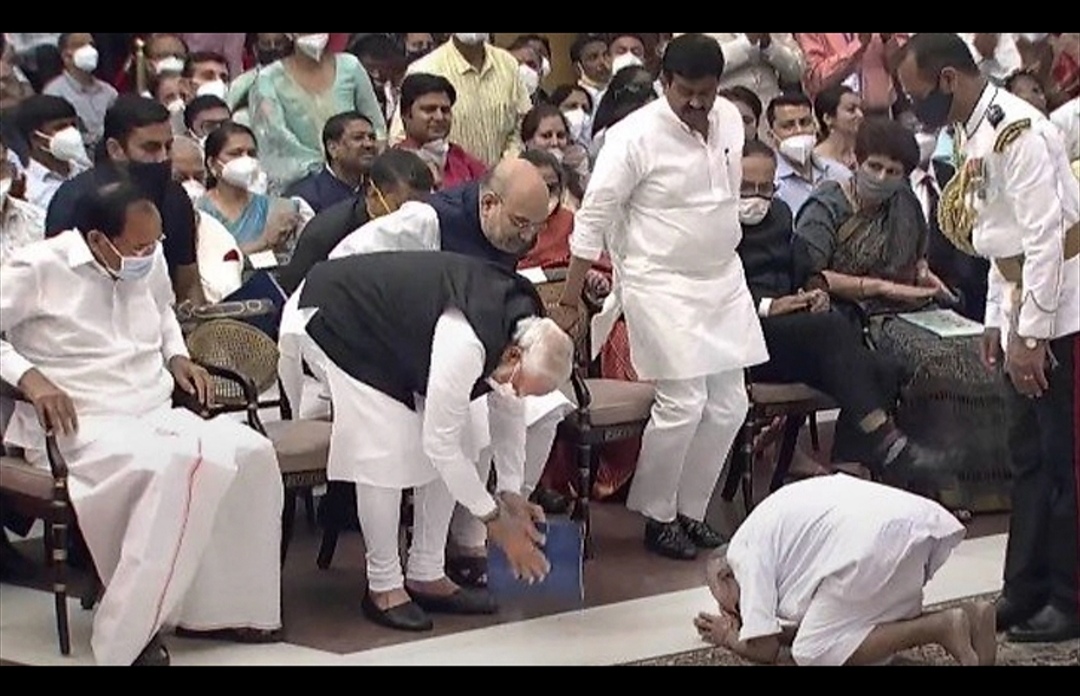 পুরস্কার গ্রহণের আগে প্রধানমন্ত্রী নরেন্দ্র মোদি এবং রাষ্ট্রপতি রাম নাথ কোবিন্দকে সামনে থেকে প্রণাম করেন স্বামী শিবানন্দ। এসময় উপস্থিত অতিথিরা করতালি দিয়ে তাকে অভিবাদন জানান। তখন প্রধানমন্ত্রী মোদিও সঙ্গে সঙ্গে মাটি স্পর্শ করে শ্রদ্ধা গ্রহণ করেন। মঞ্চে পৌঁছানোর আগে ‘যোগ গুরু’ আবার হাঁটু গেড়ে বসেন। রাষ্ট্রপতি এগিয়ে গিয়ে শিবানন্দকে উঠতে সাহায্য করেন। এরপর তিনি পুরস্কার ও প্রশংসাপত্র তুলে দেন যোগ গুরুর হাতে।