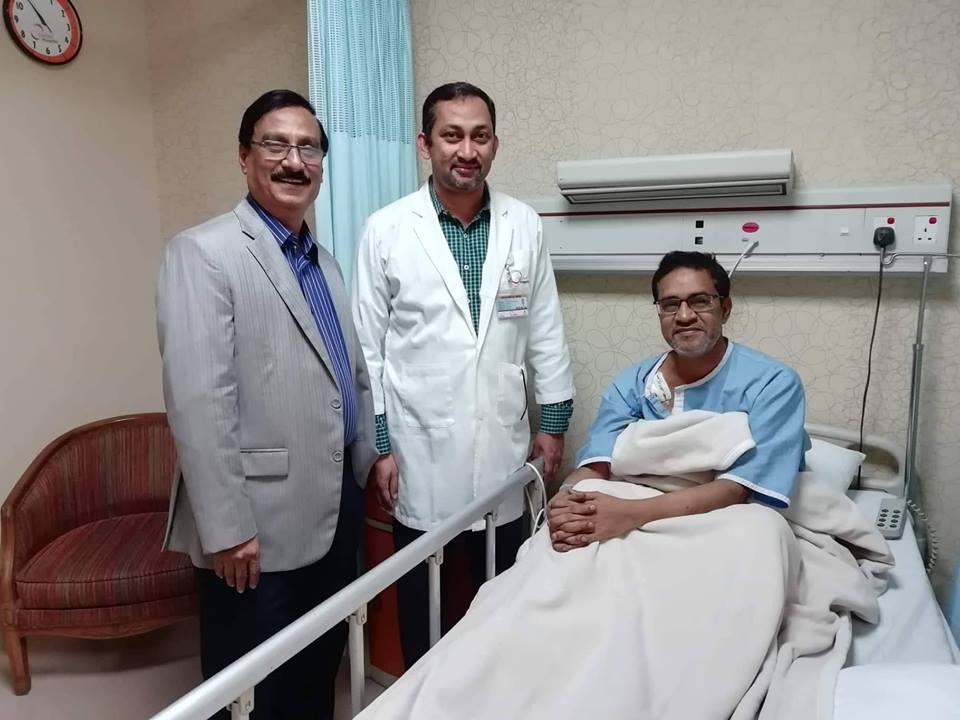 উল্লেখ্য, ২৭ নভেম্বর রাতে IMI হলে তাৎক্ষণিক তাঁকে সিওমেক হাসপাতালে নেয়া হয়েছিল। সেখানে সিসিইউর চিকিৎসকরা তাৎক্ষণিকভাবে Streptokinase দিয়ে তাঁকে CAG with Pharmaco-invasive stenting এর জন্য ঢাকায় রেফার করেন। ২৮ তারিখ ভোরেই দ্রূত তাকে ICU Ambulance এ ঢাকার ইউনাইটেড হাসপাতালে স্থানান্তর করা হয়। আর সেদিন বিকেলেই ডা. মোমিনুজ্জামান স্যার তাঁর CAG করে চিকিৎসা প্রদান করেন। আজ তিনি মোটামুটি সুস্থ্য হওয়ায় তাঁকে আগামীকাল সকালে ইউনাইটেড হাসপাতাল থেকে রিলিজ দেয়া হবে বলে জানিয়েছেন সেখানকার চিকিৎসকেরা।