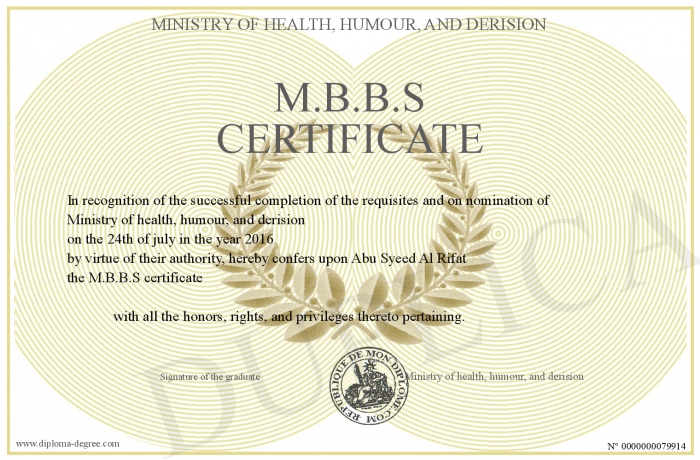 এমবিবিএস সার্টিফিকেটের দাম ১ কোটি টাকা। আর উচ্চতর কোর্স কমপ্লিট করা সার্টিফিকেটের দাম দশ কোটি টাকা। ভিমরি খেলেন নাকি শুনে। নাকি মুর্চ্ছা গেলেন।
