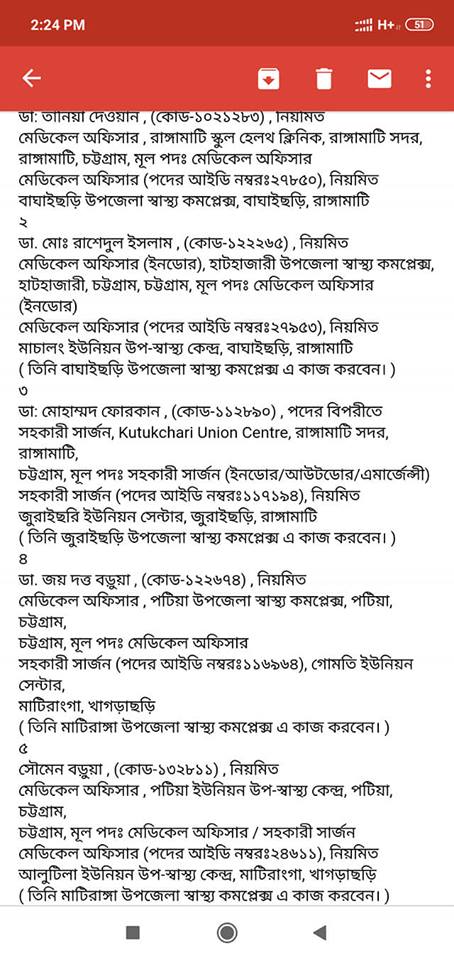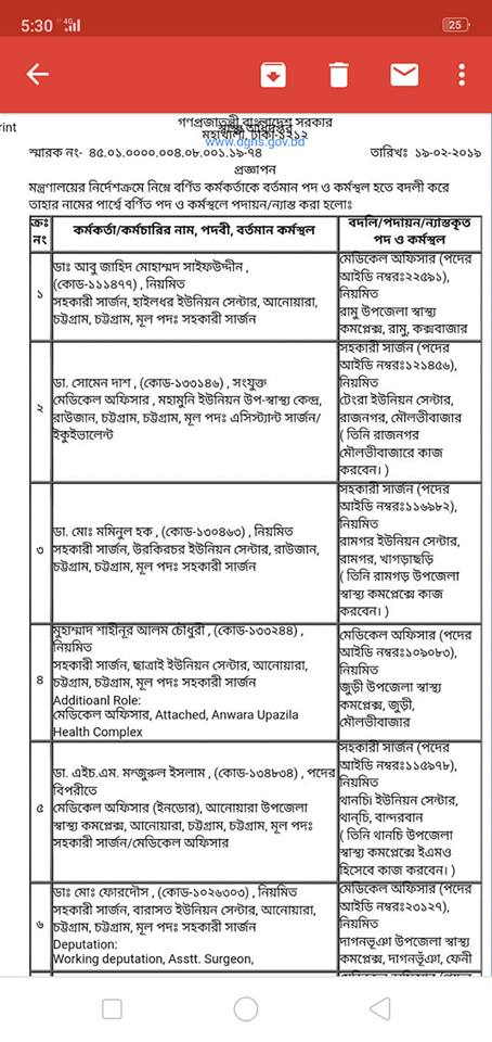 চট্টগ্রামের প্রতিটি উপজেলাতে এমনিতেই প্রয়োজনের তুলনায় চিকিৎসক সংখ্যা কম, এমতাবস্হায় চট্টগ্রামের কোন চিকিৎসক কে, চট্টগ্রাম জেলার বাহিরে অন্য কোন জেলায় বদলি করা যাবে না, অবিলম্বে এসব আদেশ বাতিল করুন নতুবা ঢাকায় এসে ডিজি অফিস ঘেরাও করা হবে।