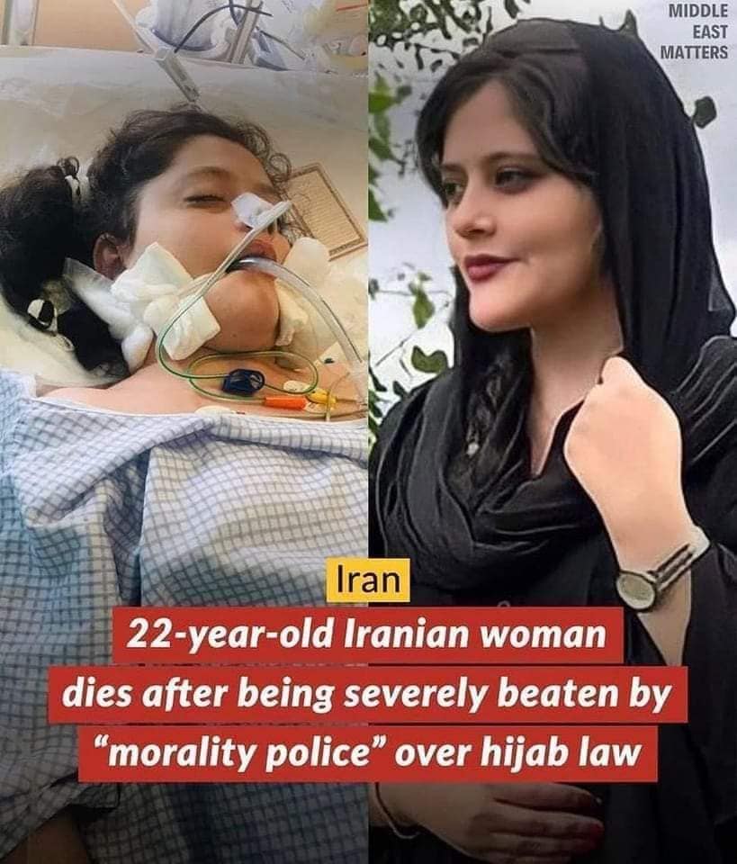 এই ইরানি মেয়েটির নাম মাহসা আমিনি। বাইশ বছরের মেয়েটির চুল খোলা ছিল বলে, হিজাব যথেষ্ট হয়নি বলে একে পিটিয়ে মেরেছে ইরানের 'মোরালিটি পুলিশ'।