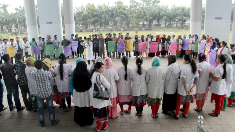 বগুড়া মেডিকেল কলেজে অন্যায় শাস্তির প্রতিবাদে