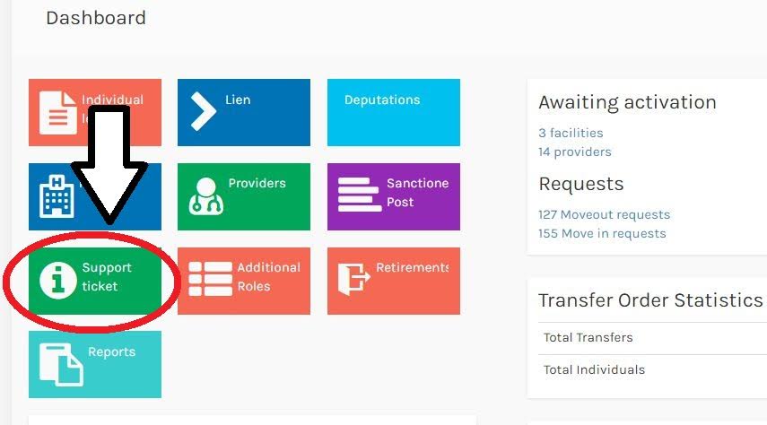 স্বাস্থ্য অধিদপ্তরের অধীনস্ত যে কোন প্রতিষ্ঠানের বিশেষ 'ফ্যাসিলিটি অ্যাডমিন' তার এইচআরএম আইডি ব্যবহার করে প্রশাসনিক সকল বিষয়ের উদ্ভূত সমস্যা নিরসনের জন্য স্বাস্থ্য অধিদপ্তরের কর্তা ব্যাক্তিদের কাছে সাপোর্ট টিকেট পাঠাতে পারবেন। পর্যায়ক্রমে এই সাপোর্ট টিকেট কার্যক্রম এর ব্যাপ্তি ঘটবে বিভাগীয় কার্যালয়ে, মেডিকেল কলেজ হাসপাতাল ও বিশেষায়িত হাসপাতাল পর্যায়ে, সিভিল সার্জন কার্যালয়ে এবং উপজেলা স্বাস্থ্য ও পঃ পঃ কর্মকর্তার কার্যালয়ে।