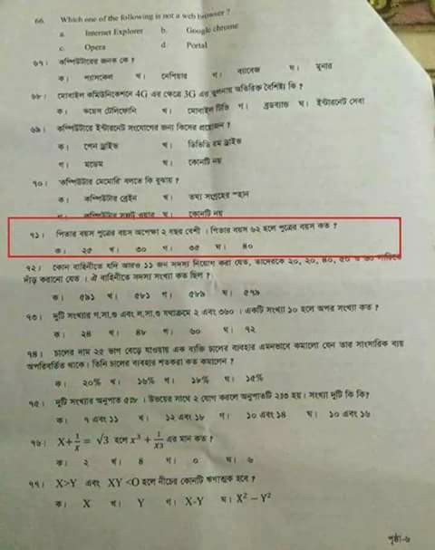 অঙ্কের প্রশ্নপত্র: পিতা বয়েসে পুত্রের চেয়ে ২ বছরের বড় ! এই কমনসেন্স!