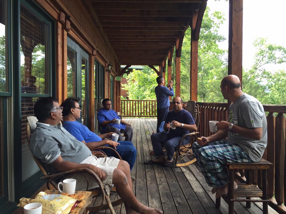 কেবিনের প্রতিটি তলাতে বিশাল বারান্দা। তাতে আনেক গুলো ইজি চেয়ার। বসলেই চোখে পড়ে সারি সারি পাহাড়, দৃষ্টির শেষ সীমা পর্যন্ত। তার পর অবারিত মেঘের ধোয়া। নাম তার " Great Smokey Mountains"। বিধাতা তার সীমাহীন সুন্দর ছড়িয়ে রেখেছেন চারদিকে।